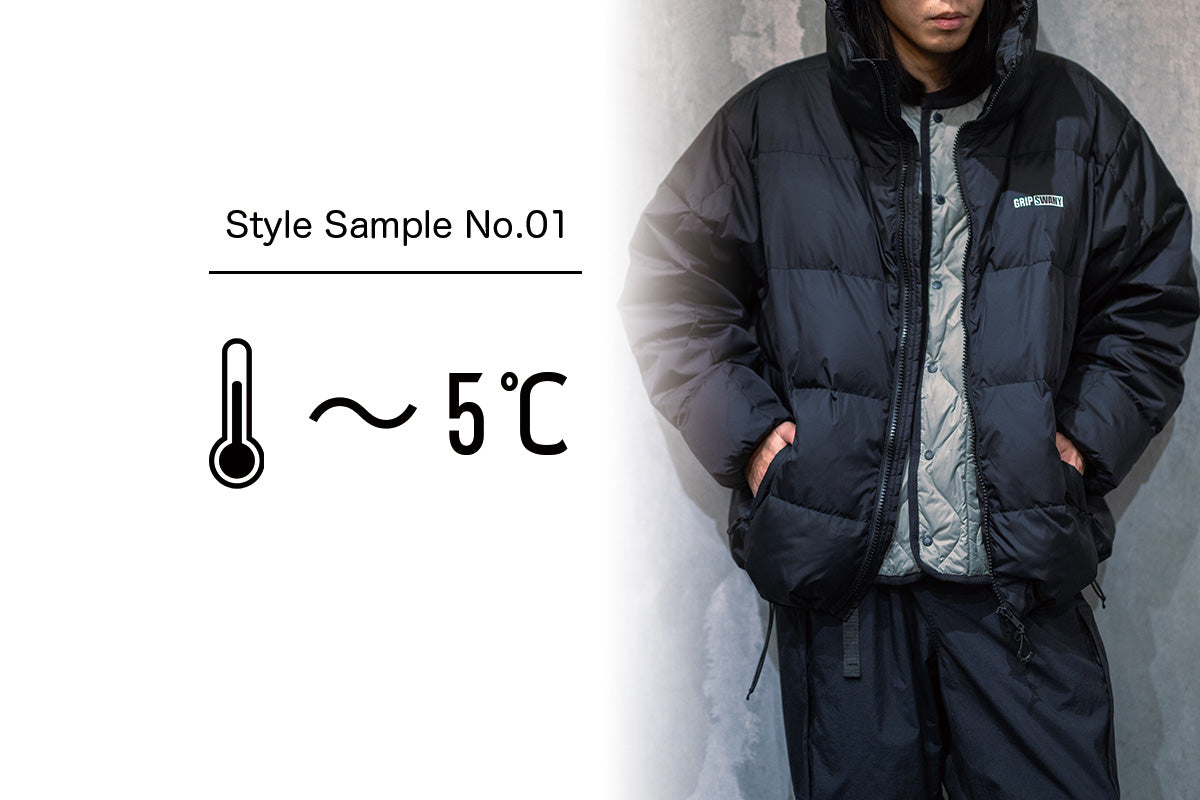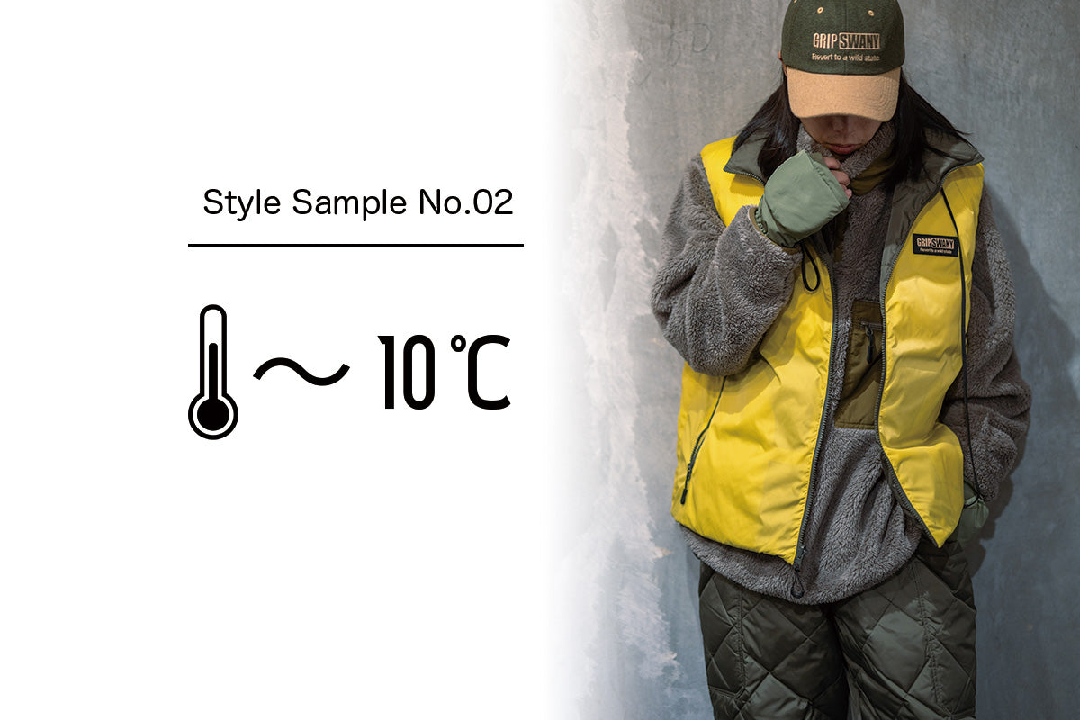 ダウンジャケットまではいらないけど、アウターなしで心もとない。そんなときに、大活躍してくれるのがダウンベスト。適度な暖かさを確保できるだけでなく、レイヤードも楽しめる。リバーシブルタイプなので、2パターンの着こなしを楽しめるのも◎。インナーのGSMCT-077で暖かさもプラス。ボトムスは GSMP-065 を採用し、下半身の防寒対策も抜かりなし。