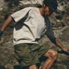 There is a pocket on the left chest and the hem has an adjustable drawstring.