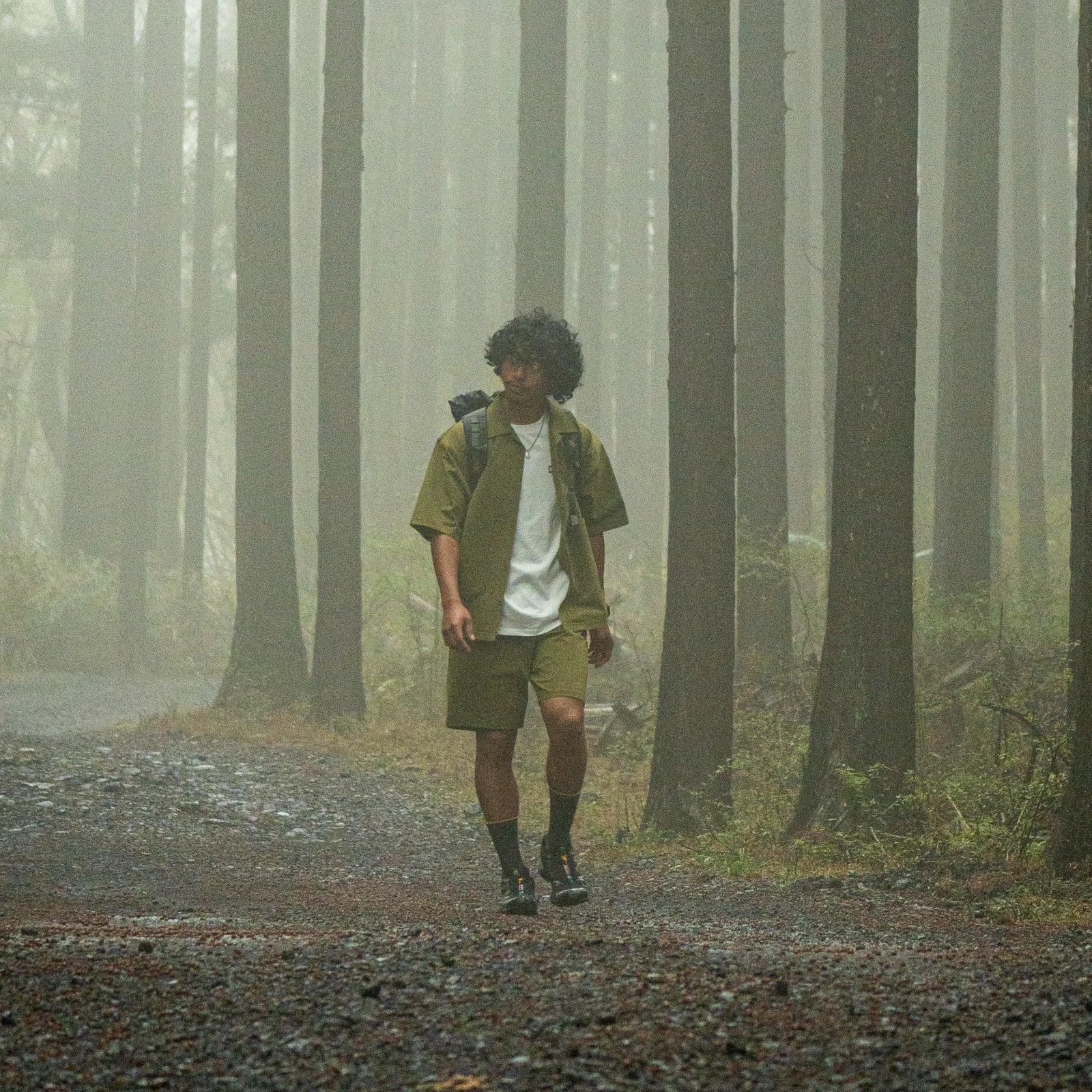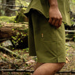 Made of quick-drying, breathable knit material. A comfortable short-sleeved shirt with a stretchy, soft texture that allows for easy movement. There is a smartphone pocket on the left front.